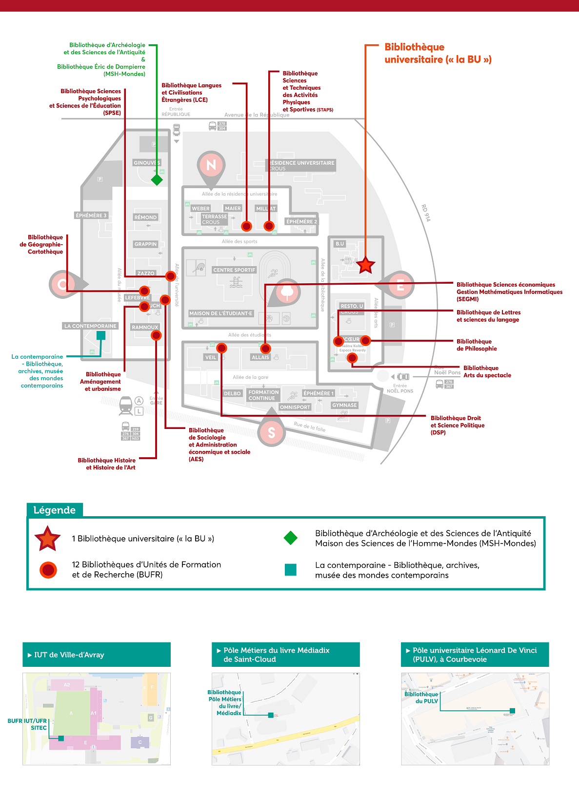 En cas de fermeture, les livres empruntés peuvent être restitués à la BUFR Lettres ou à la BUFR Philosophie, situées également dans le bâtiment Ricœur (3ème étage).
